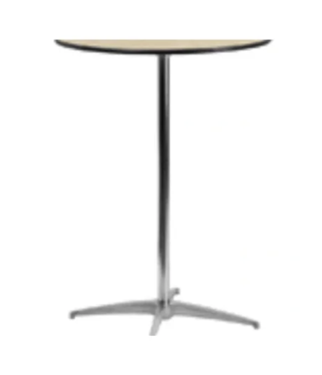 Classic 30" Round Bar-Height Cocktail Table — a sleek, space-friendly surface perfect for standing gatherings and casual mingling. At bar height, it gives guests a comfortable perch for drinks and hors d’oeuvres without requiring seats, making it ideal for cocktail hours, networking events, trade shows, or backyard parties. The round top encourages conversation by allowing people to gather around evenly, and its compact footprint fits well in tight or crowded layouts. Durable and easy to place throughout your event, this table offers a simple, polished focal point that helps keep beverages and small plates within reach while guests circulate.